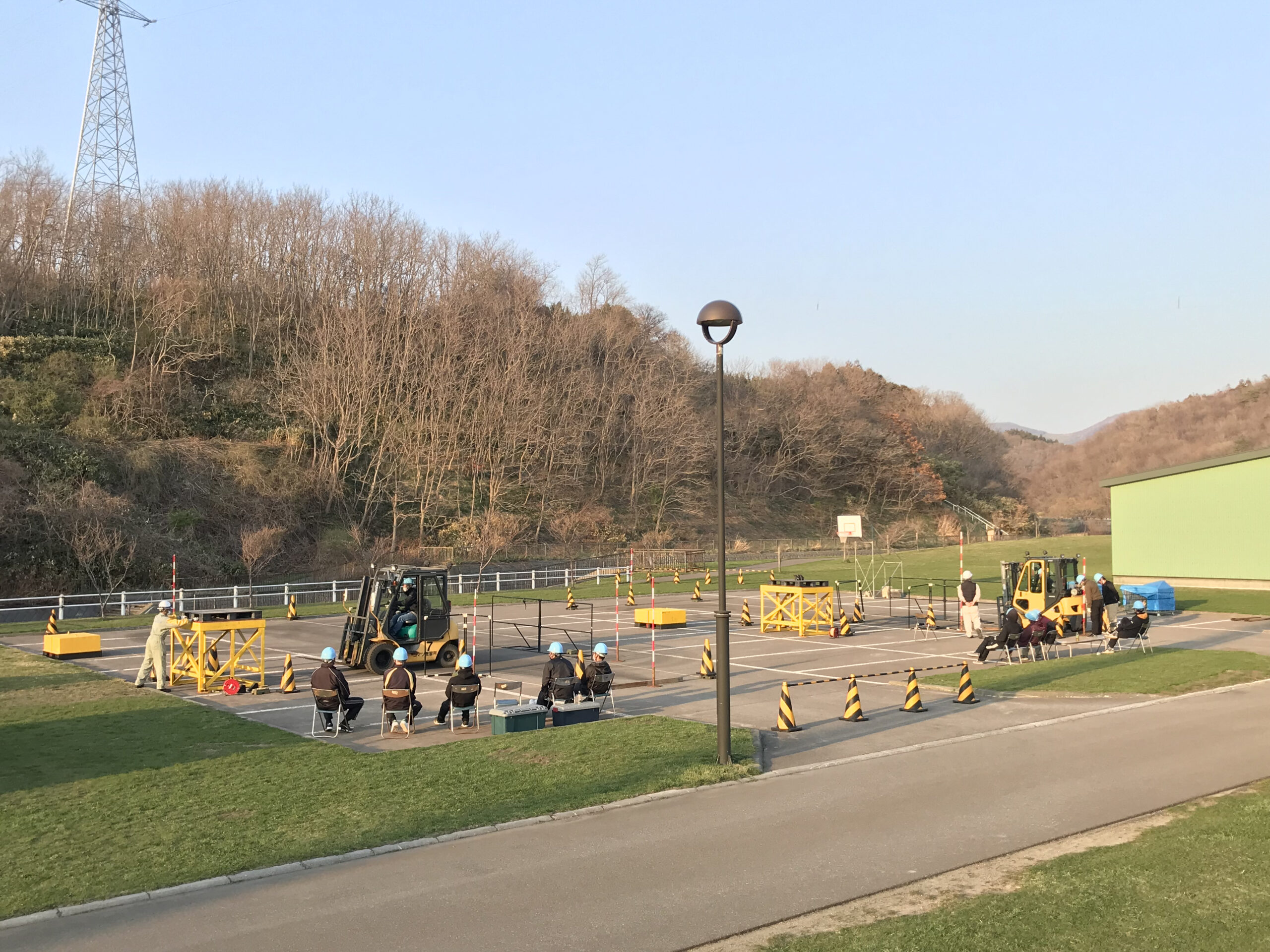 4/19は学科講習、4/20~22までは実技講習を行い、実技は青空のもと、「江差町運動公園」駐車場を会場